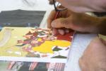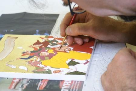 Day 4 was a fun day. We were asked to go round the other classes at the summer school and take photographs of the painters, rug makers and upholsterers and anyone else who took our fancy. The theme was ‘documentary’ so we were trying to take photographs to tell a story. Easy for some crafts, more difficult for others. Learning experience of the day for me was the need to have a decent wide aperture lens. My standard zoom only goes down to f5.6 which isn’t really enough (a) for indoor available light shots and (b) blurring otherwise distracting backgrounds.