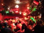 Our evening at the Glee Club included dinner. It was self-service and since it was the first Xmas dinner of the year it meant turkey. Turkey can be tasteless and this was. Curiously it was sitting in what looked like turkey consome which I guess was there to keep it moist. But if you think of turkey as a platform for more tasty fare, rather like steam-baked white bread, it was well complemented by sausage and bacon, stuffing, veggies which were not over-cooked and quite acceptable gravy. And for those who didn’t want turkey there was meat. I think it was beef but it might have been something else; it looked like the toughest, driest, most well-done meat I’ve ever seen.