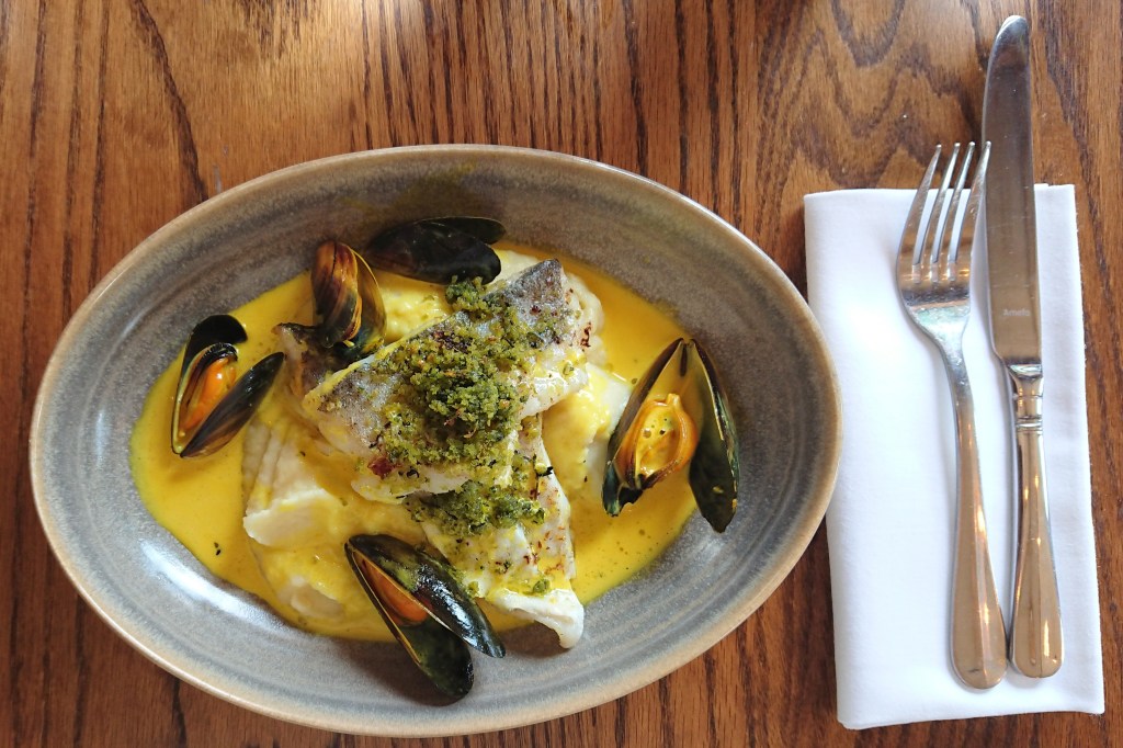 2 Restaurant. We’re really fortunate that we live in Histon, close to but not a part of Cambridge. Our community is well served with a buoyant High Street and six pubs (including one in the joined village of Impington). Early this year one of these was taken on and opened by the White’s Brasserie chain (that’s white as in Raymond Blanc) and it’s just right: not fine dining but a brasserie. Friday lunchtime was very hot but my crusted haddock with saffron sauce was just right.