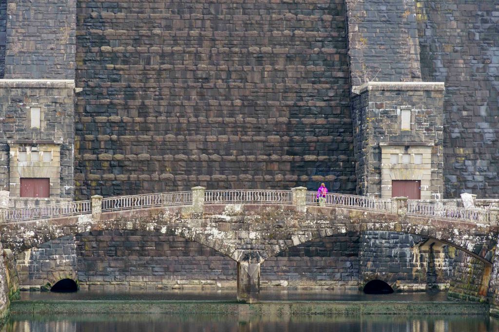 In the afternoon we go first to the top of the dam by the visitor cente and then to Pen-y-Bont, where I photograph the wood carvings and then climb up to the Pen y Carreg dam.