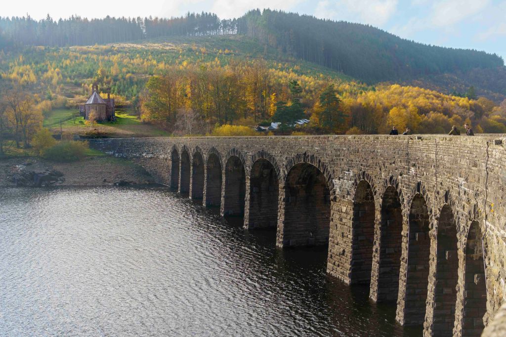We then head down to Nantgwyllt where there’s a road running along the top of the Garreg Ddu dam and a replica chapel to the one that was buried when they dammed the valley.